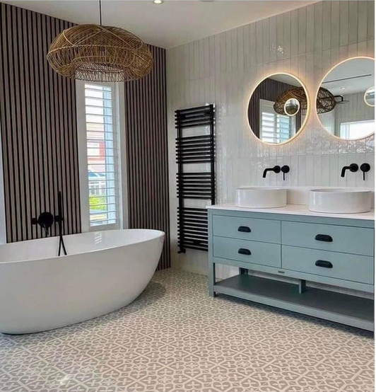 Vertical Stacks: Contemporary Chic: Stacking tiles vertically is a trendy layout that offers a contemporary and chic atmosphere. This layout can add an updated and fresh look to your bathroom, playing with proportions and height to make a striking impact. With these tile choices, you have the power to transform your bathroom into a personalised masterpiece, enhancing its design with creativity and style.